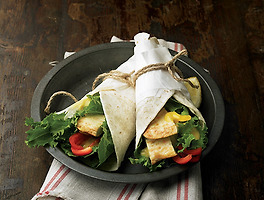 7. ⑥에 토마토, 채 썬 양파, 어린잎 순서로 올린 뒤, 소스를 뿌리고 빵으로 덮는다.