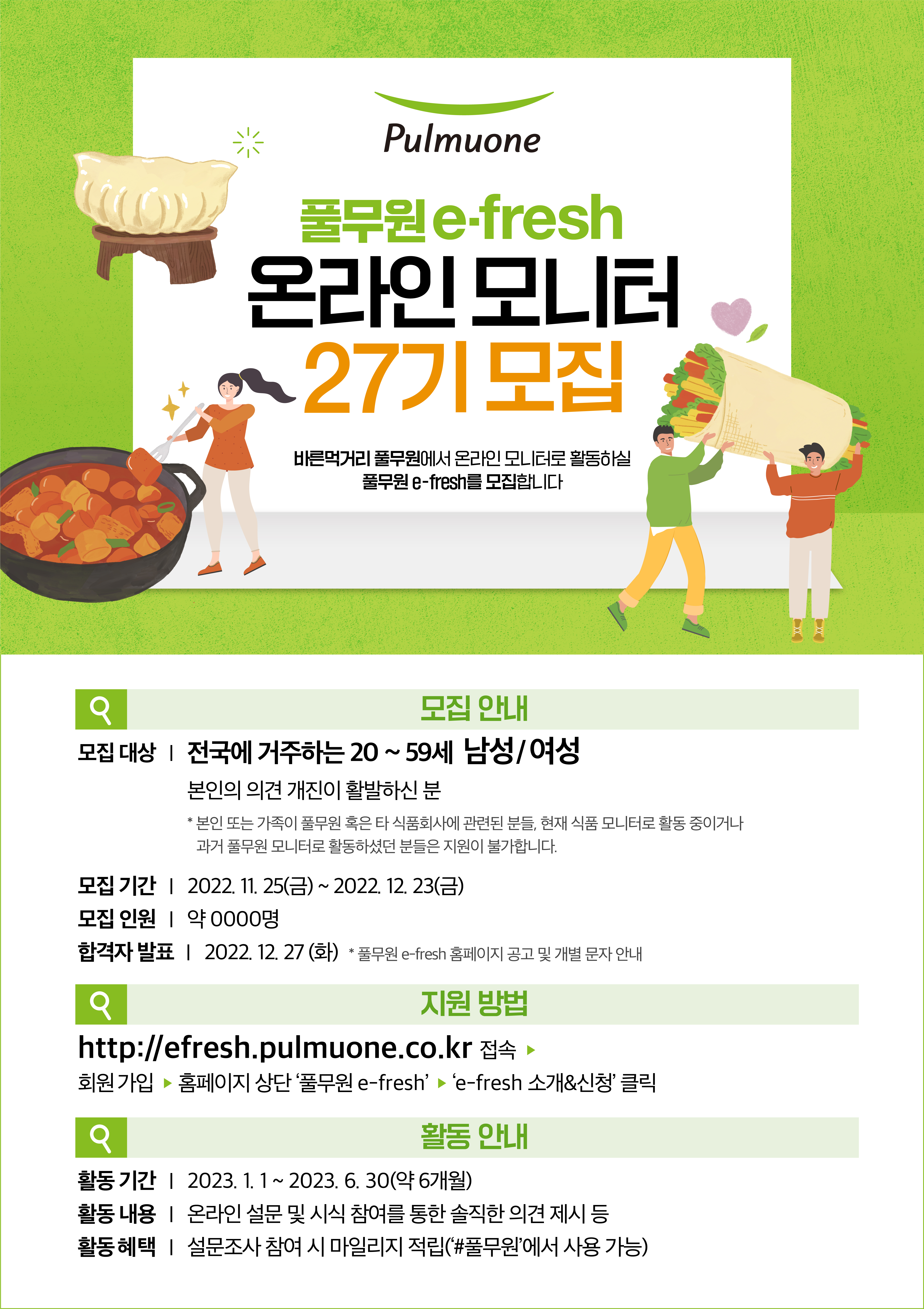 과거 풀무원 모니터로 활동하셨던 분들은 지원이 불가능하니