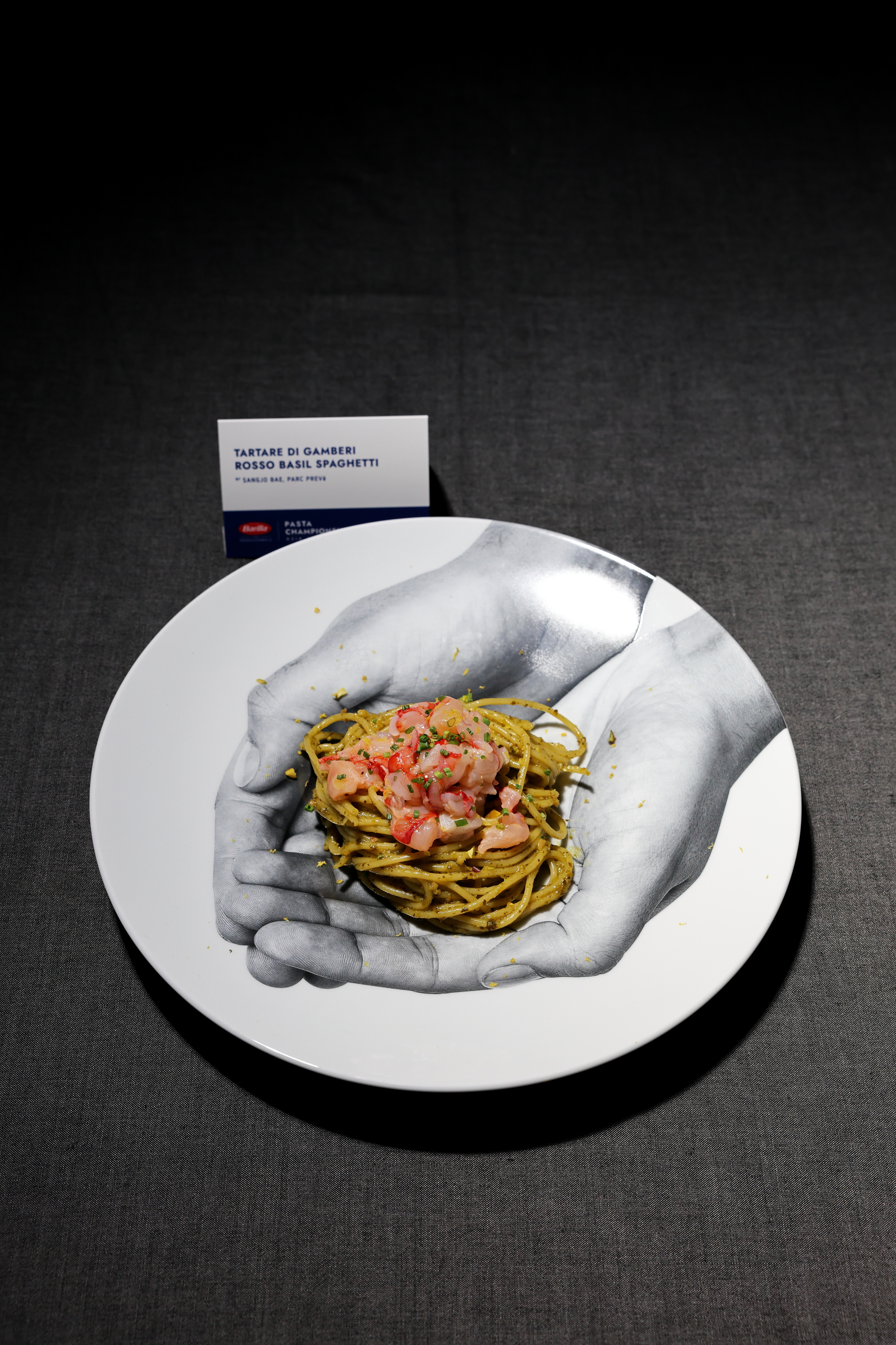 Tartare di Gamberi Rosso Basil Spaghetti