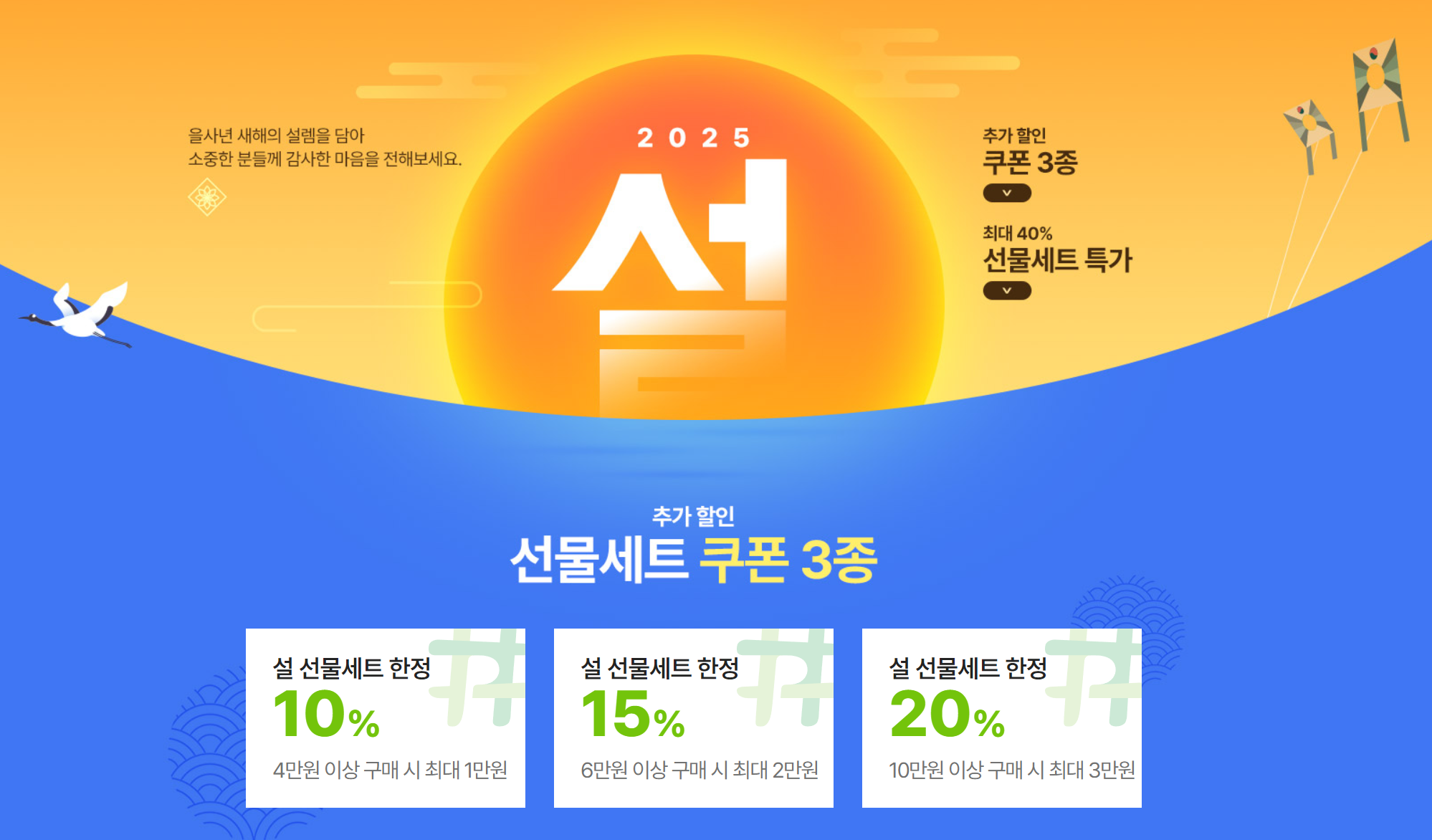 각 제품별로 설 선물세트 전용 장바구니 할인 쿠폰을 준비해