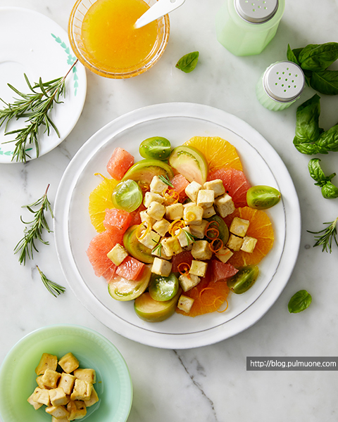 두부에 로즈마리 솔트와 흑후추, 바질 등