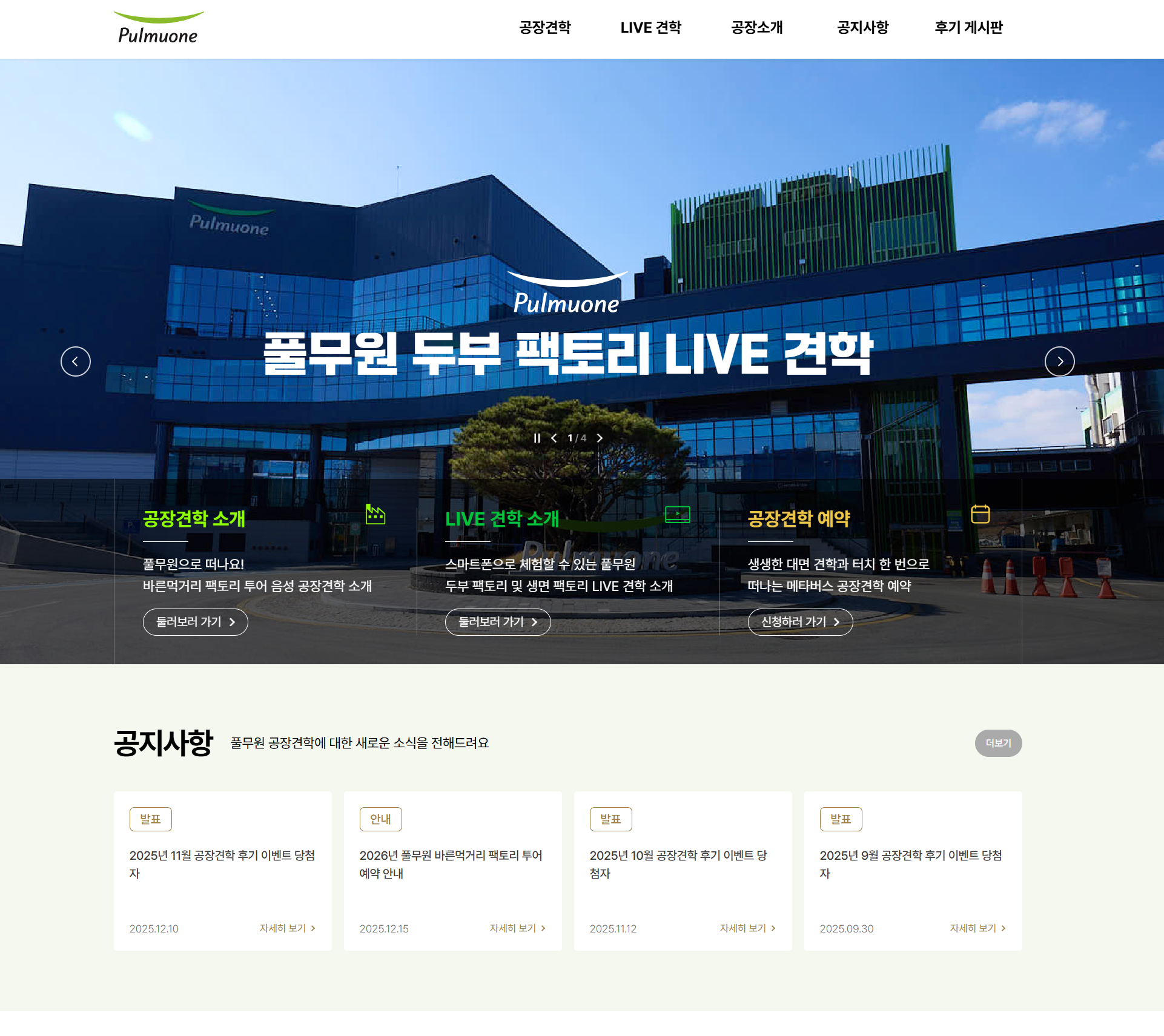 풀무원 공장견학 홈페이지에서 신청할 수 있는데요.
