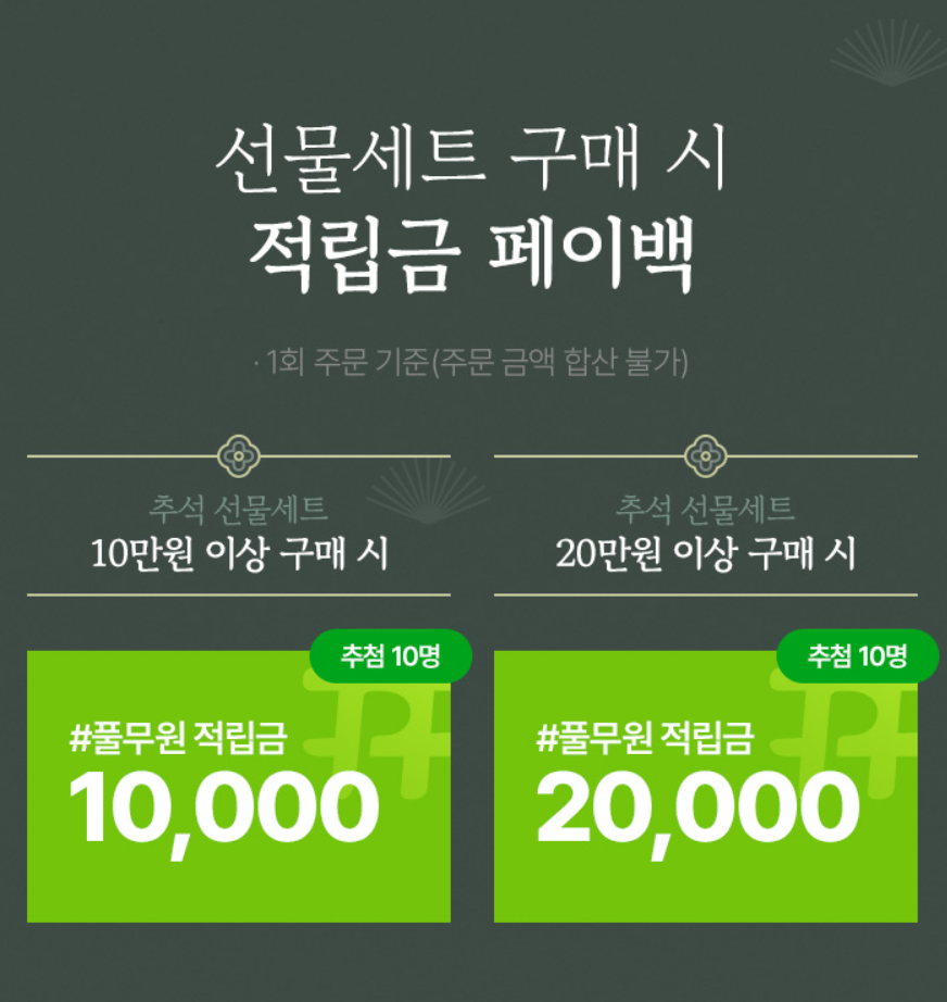 3만 원, 5만 원, 7만 원, 10만 원 이상 선물 세트 구매 시