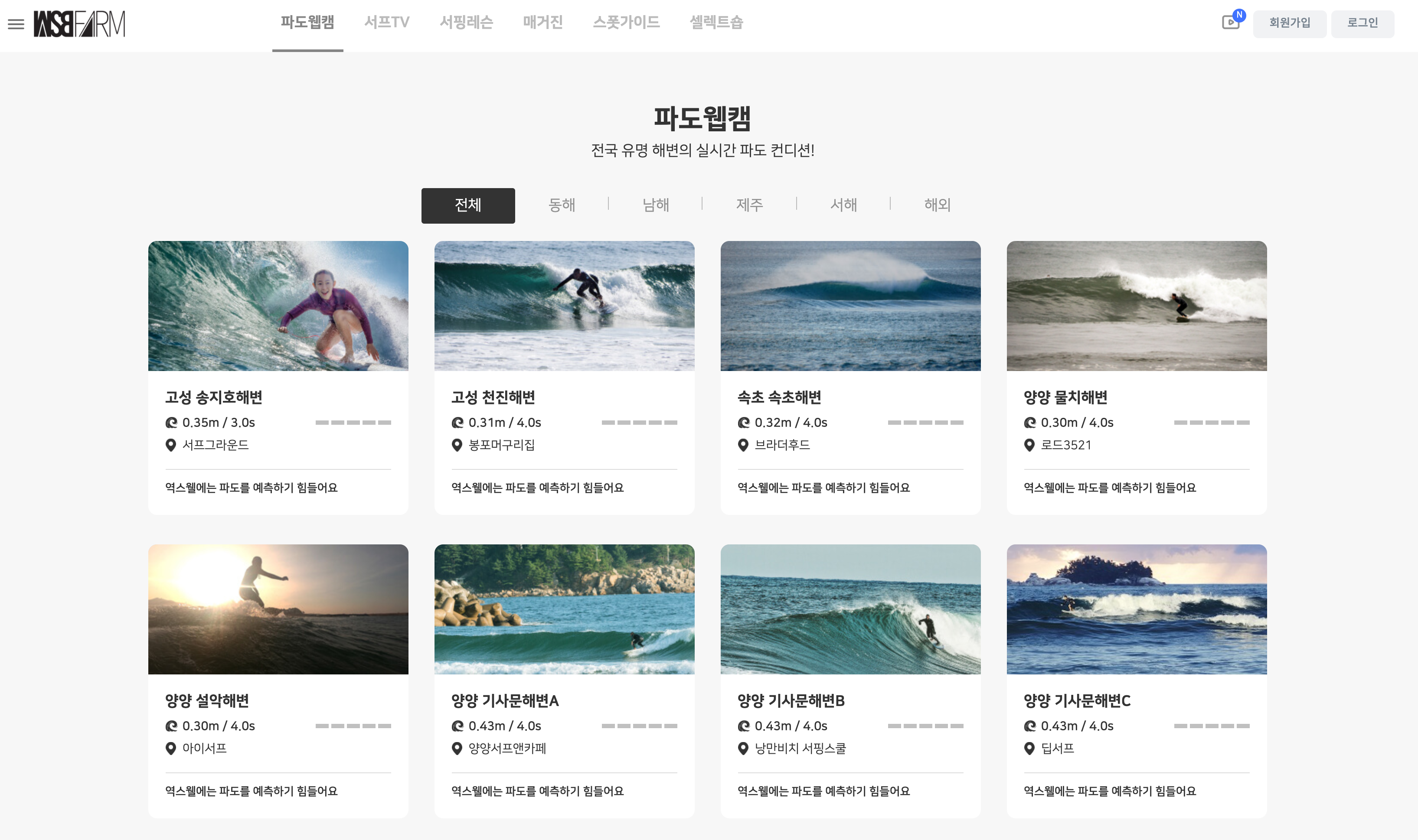 서핑 매거진 'WSB FARM' 에서 제공하는 파도 웹캠인데요.