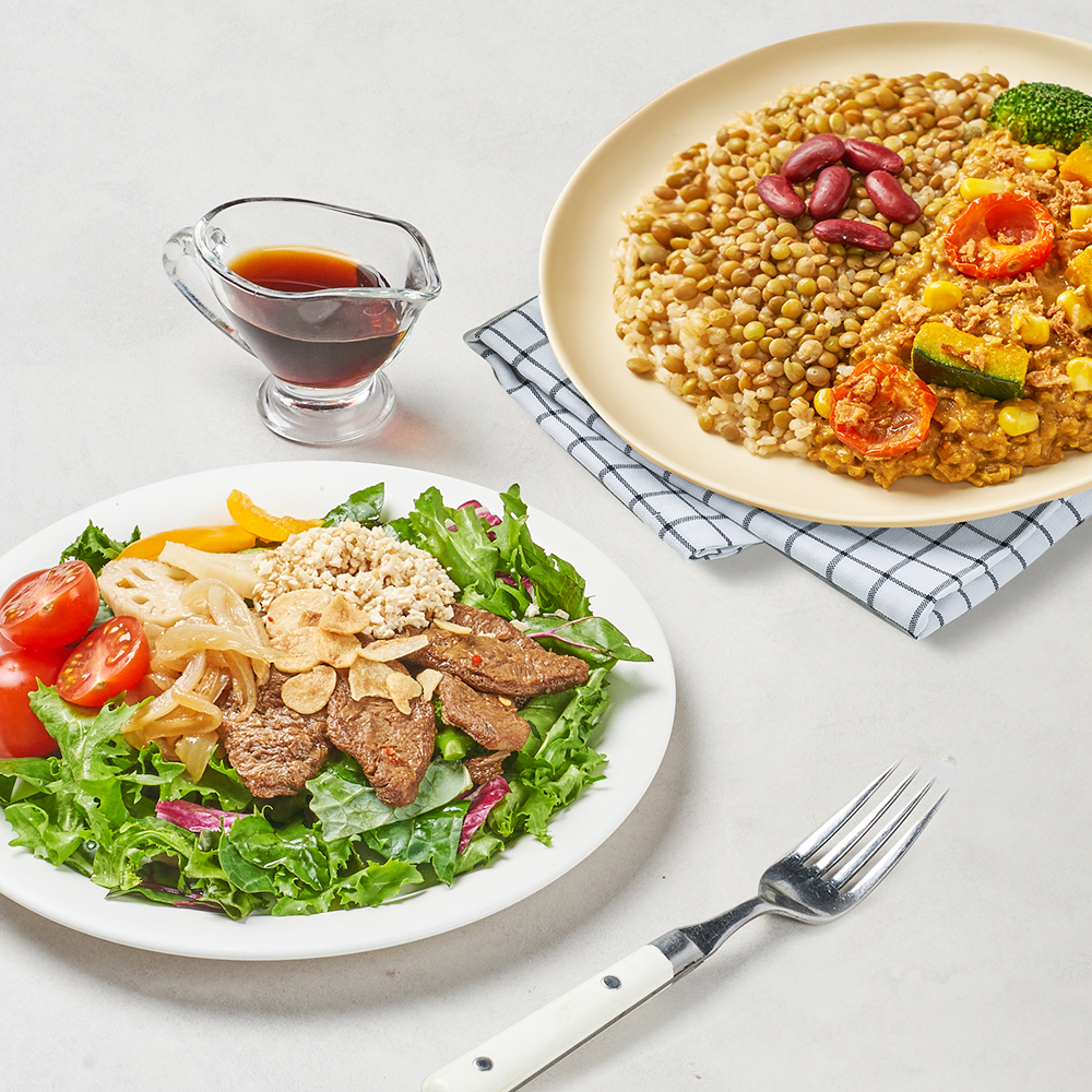 식물성 단백질과 신선 채소를 푸짐하게 곁들여