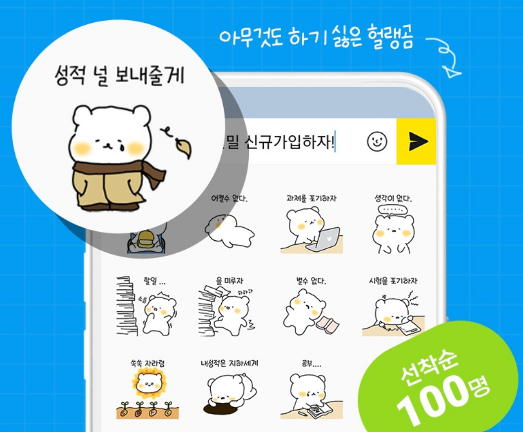 귀여운 카카오톡 이모티콘이 준비되어 있어요.